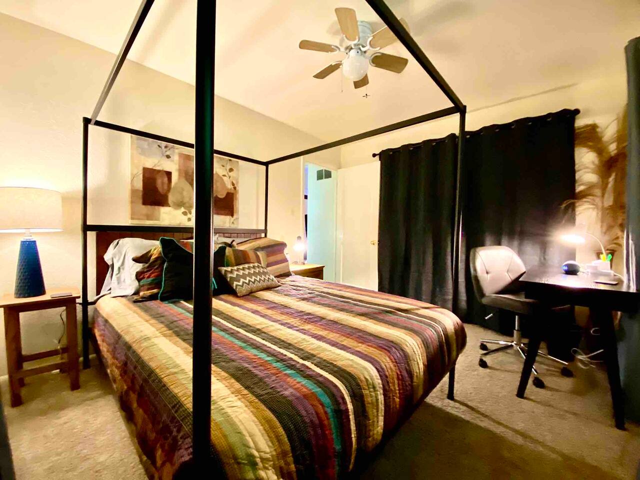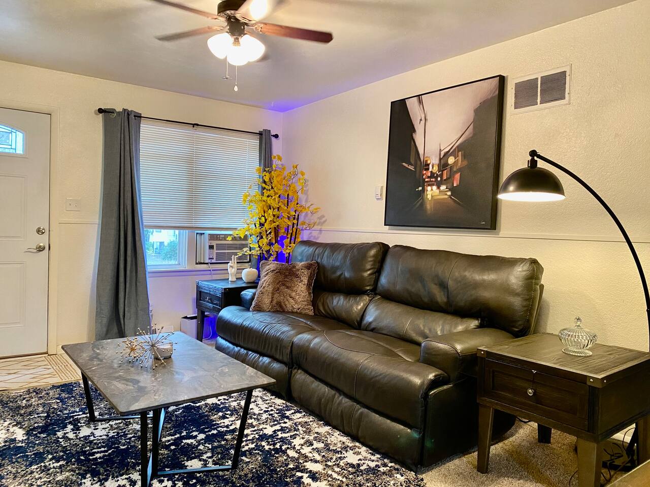 Monthly rates available! Payment Plan available! Send Inquiry! 2 bedroom apartment Living room features fully adjustable leather couch recliner with 65" TV Bedrooms feature queen size beds with memory foam mattresses Bedroom 1 includes desk and 55" TV. High speed internet. AC units in living room and bedroom. Kitchen is fully stocked with cookware, flatware, utensils, dishware, glassware, spices and condiments. Bathroom stocked with premium soaps, shampoo, conditioner and lotions.